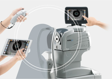 - L’ARK-F/AR-F permet également d’effectuer des mesures manuelles à l’aide d’un grand écran tactile de 7 pouces. L’alignement se fait aisément, d’une simple pression longue sur une position de l’écran et une icône. Des icônes clairement identifiables assurent une utilisation intuitive. Une toute nouvelle manette de contrôle et un logiciel de commande sur tablette sont offerts en option, pour accroître la liberté et la productivité de l’opérateur