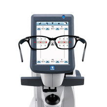 Un mécanisme unique de la table à lentilles permet à l'embout nasal d'entrer partiellement dans la table à lentilles. Ce changement mécanique permet de mesurer facilement la partie de près d'un verre progressif sans enlever la table des verres, même si la partie de près est située sur le bord de la monture.