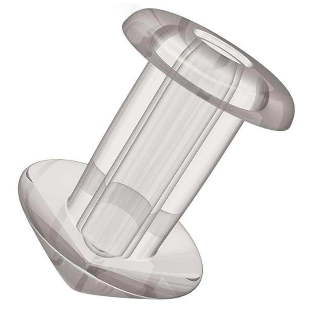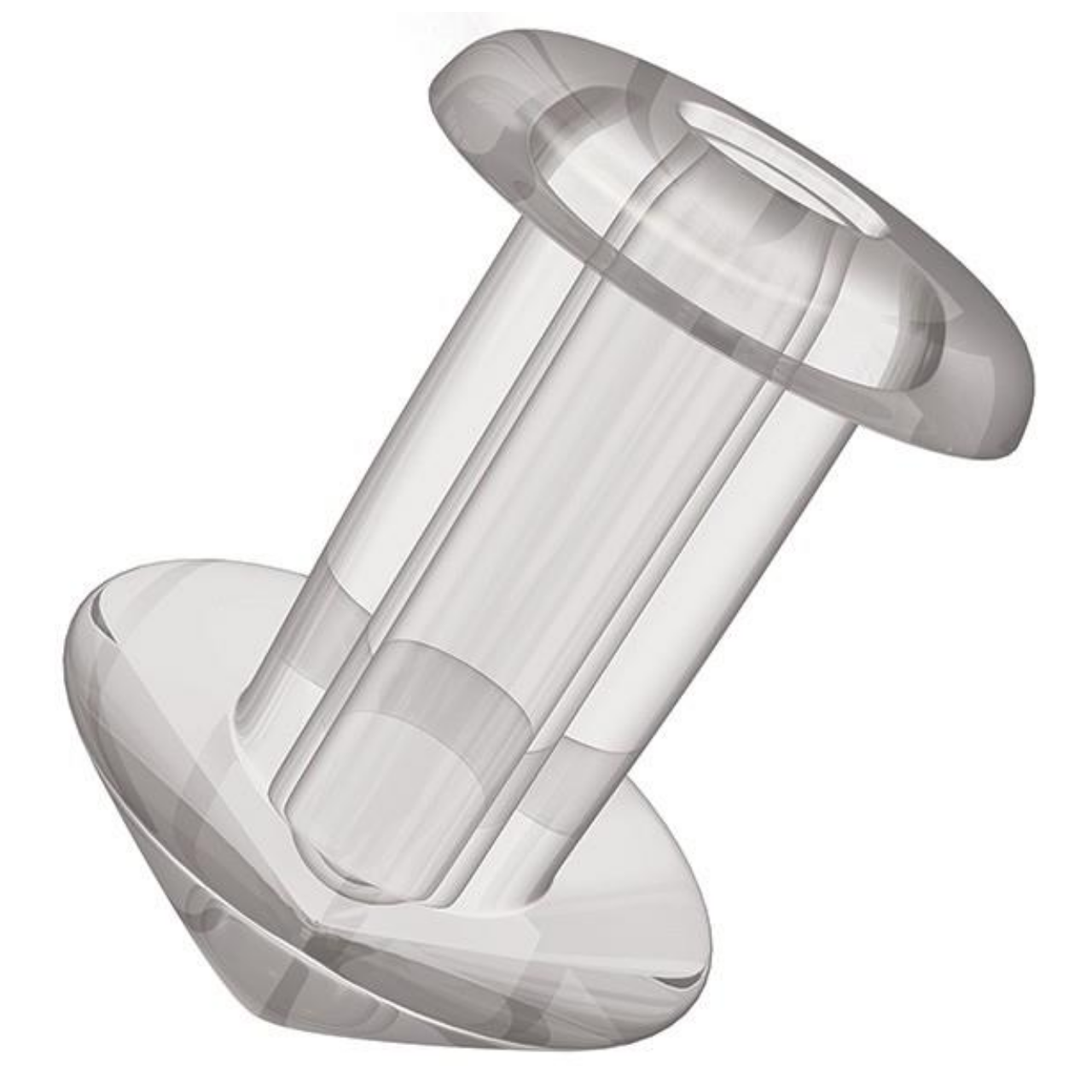 Le bouchon punctiforme en silicone d'OASIS Medical possède une partie tête fine conçue pour rester à l'extérieur du punctum et reposer sur la paupière. La partie centrale du bouchon a un diamètre inférieur à celui de la tête et est conçue pour s'adapter à l'ouverture du punctum. La partie nasale du bouchon a un diamètre plus important et est conçue pour s'insérer dans le canalicule afin de retenir le bouchon dans le punctum. Les bouchons en silicone sont disponibles en deux styles : le bouchon original avec une partie nasale fermée qui bloque l'écoulement à travers l'ouverture ponctuelle, et le bouchon de contrôle de l'écoulement avec une ouverture à travers la partie nasale qui permet l'écoulement à travers l'ouverture ponctuelle.