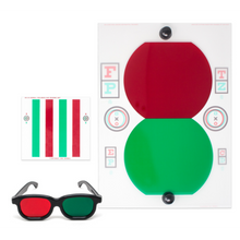 Builds binocularity in true space. Red/Green stereo slides can be used on TV screen or white wall. Trainers have suppression and fixation disparity controls and is often used in sports vision orthoptics.
