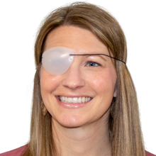 Fluorescing eye patch that lets the light in, but keeps the patient occluded even at near.
