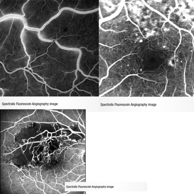 The confocal scanning laser ophthalmoscope (cSLO) technology enhances fluorescein angiography (FA) in two key ways. First, a precise laser wavelength generates the peak emission of light from fluorescein dye, increasing the signal-to-noise ratio. Secondly, confocal technology blocks out-of-focus and scattered light. The results are dramatic. SPECTRALIS® video FA provides clear, detailed images of the capillary bed in real-time and can reveal leakage that may be missed with static FA.