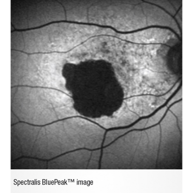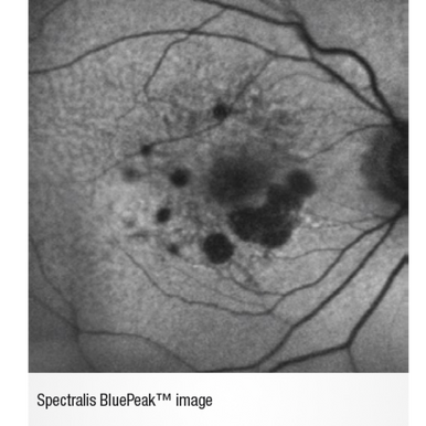 BluePeak™ Blue Laser Autofluorescence imaging takes advantage of the natural fluorescent properties of lipofuscin. BluePeak™ autofluorescence captures fundus autofluorescence (FAF) images, providing both structural and metabolic information about the retina.