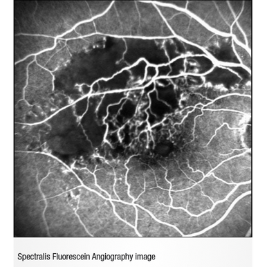 The confocal scanning laser ophthalmoscope (cSLO) technology enhances fluorescein angiography (FA) in two key ways. First, a precise laser wavelength generates the peak emission of light from fluorescein dye, increasing the signal-to-noise ratio. Secondly, confocal technology blocks out-of-focus and scattered light. The results are dramatic. SPECTRALIS® video FA provides clear, detailed images of the capillary bed in real-time and can reveal leakage that may be missed with static FA.