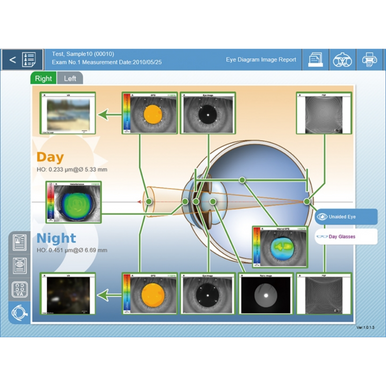 It clarifies causes of vision difficulties through wavefront analysis of information measured over a wide area. - Solutions for face-to-face consulting: Tablet viewer provides four kinds of easy-to-understand reports for explanation and consulting.