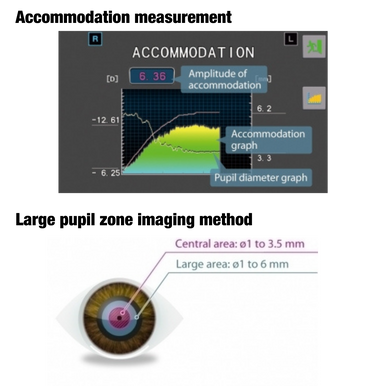 - The large pupil zone imaging method measures the central refraction and a large area refraction. The difference of the measurement allows assessment of the effect of pupil size such as a vision in dim light.