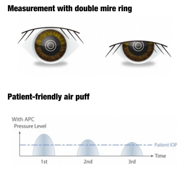 - Automatic Puff Control (APC): In subsequent measurements, the APC function performs the measurement with the minimum air pressure based on the previous measurement data.